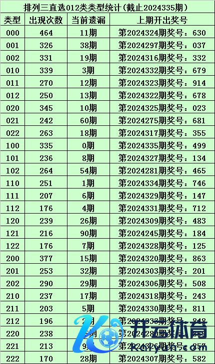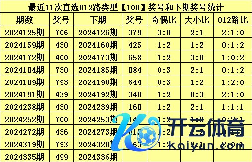 上期回顾:体彩胪列三第2024335期开出奖号:499,其012路比为2:1:0,奖号012路类型为:100。